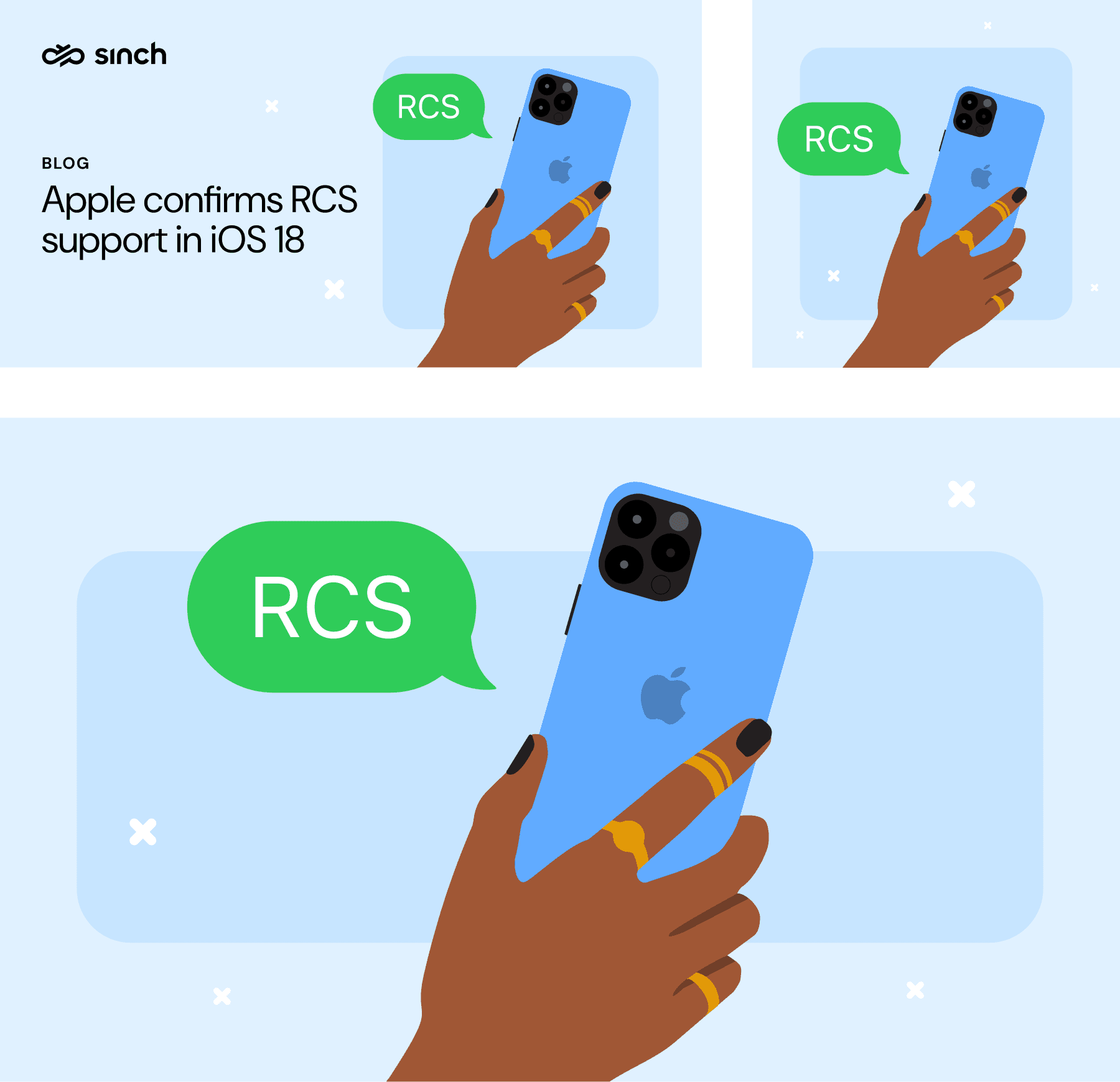 Sinch’s products and solutions often require visual representations of messaging app UIs. For this, the brand guidelines had defined what it calls ‘handsets' from the beginning, stylized mockups of smartphones.
