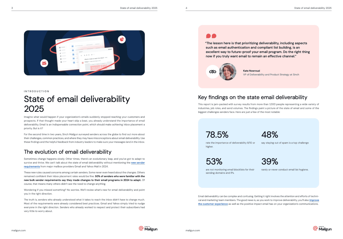 We create comprehensive, multi-page reports and documents, such as the The State of Email Deliverability Report 2025 for Mailgun, one of Sinch's sub brands. This project was particularly unique as it marked our first ungated long-form content, accessible to all readers without requiring personal information.