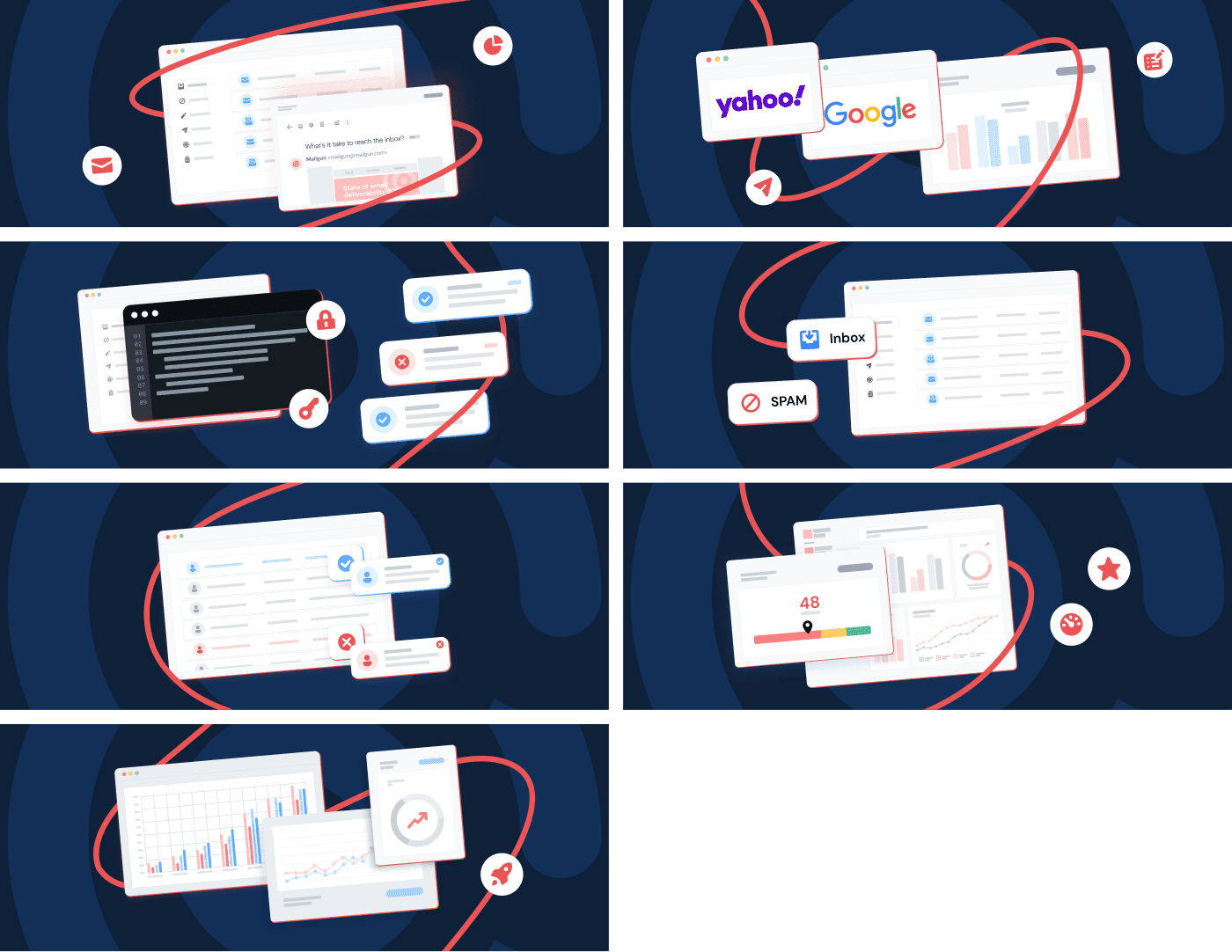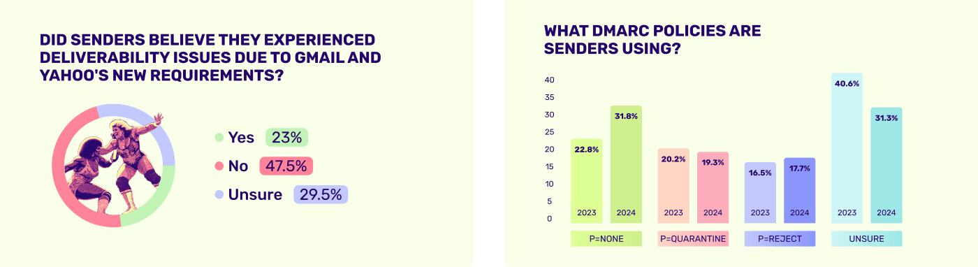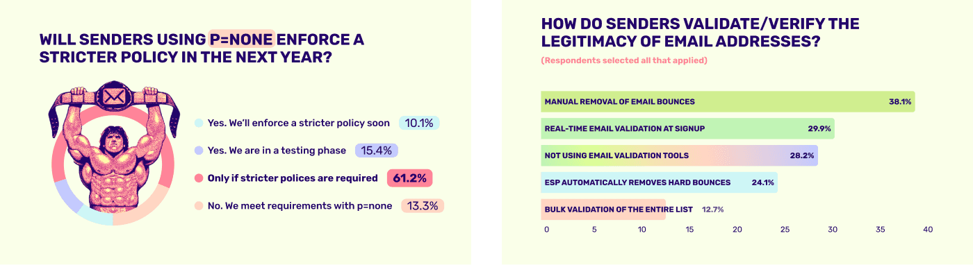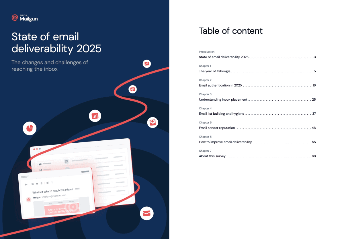 Since this report would be available in our blog, we knew its chapters would live as individual pages and coexist with previous blog posts. So I developed a distinctive visual identity that could set all of its content apart from regular Mailgun content. The challenge was to balance a fresh, engaging look with the established Mailgun brand, especially considering its recent integration with Sinch.