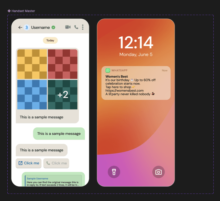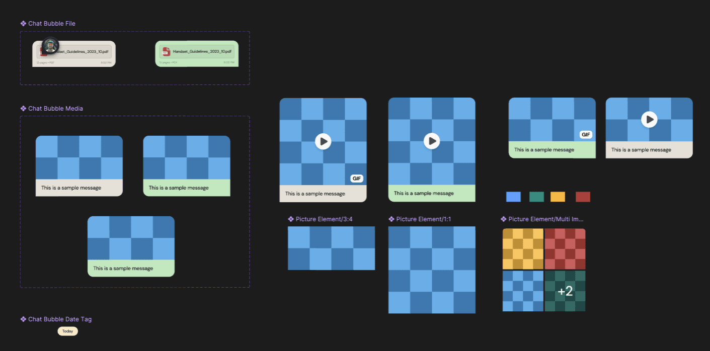 I saw great opportunity for improvement and took the initiative to create something that would make generating handsets easier and quicker for all the designers at Sinch. The idea was that since chat mockups are technically UI, this component should be built kind of like UI projects are in Figma, and that's what the tool excels at.